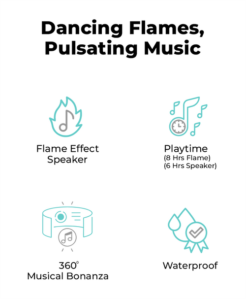 BeDazzle LED ambient Bluetooth speaker comes with crisp, clear, and exciting LED features. It works as a portable Bluetooth speaker and an LED lantern that mimics extraordinarily realistic & natural dancing flames to create a romantic atmosphere for you.
