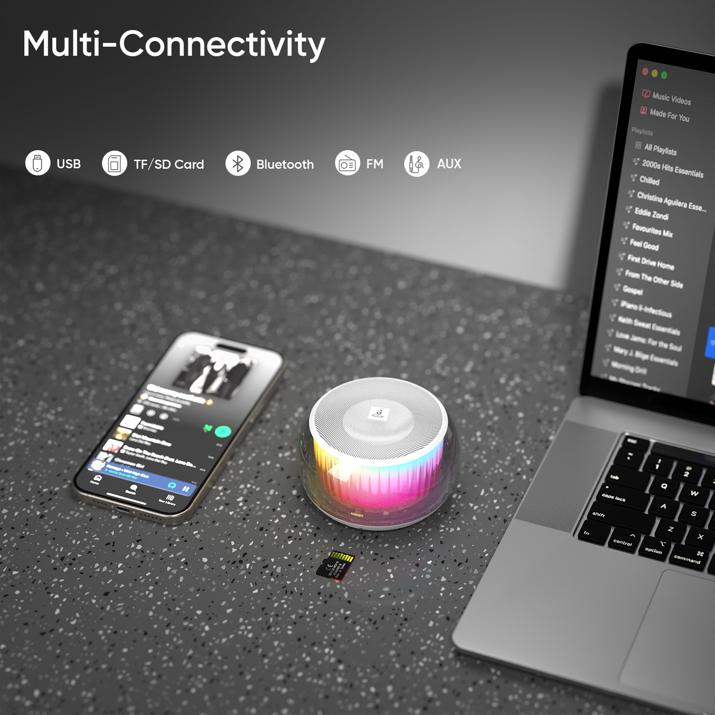 Set the mood with six captivating RGB light modes, creating a visually stunning ambiance that syncs with your music for a complete sensory experience.
