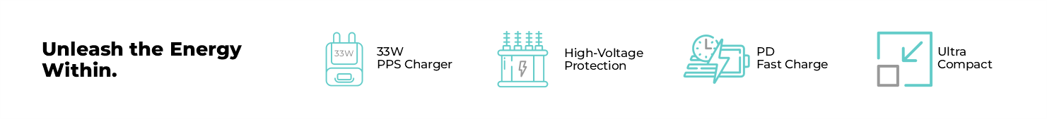 Today’s fast-paced world requires portability. Because of this, the 33W Charger is 58% smaller than traditional chargers.