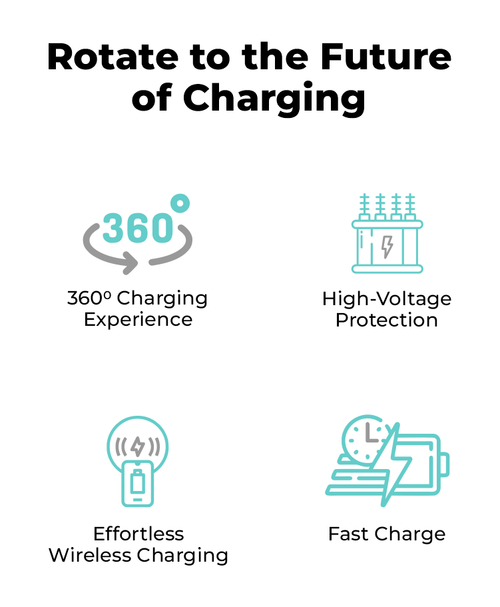DockMe goes beyond charging functionality by offering a rotating phone stand. As your phone is being powered up through either of the three pins, it is also being supported by the dock, which functions as a phone stand. Scan the news, make video calls, or browse your favourite content hands-free while your device charges.