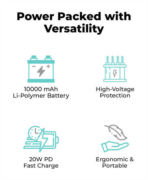 Empower your devices with a robust 10000 mAh battery for extended usage anytime, anywhere.
