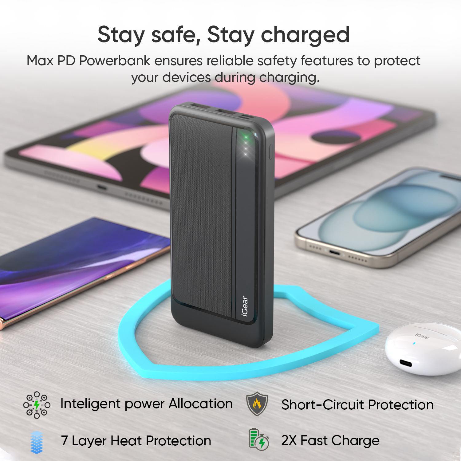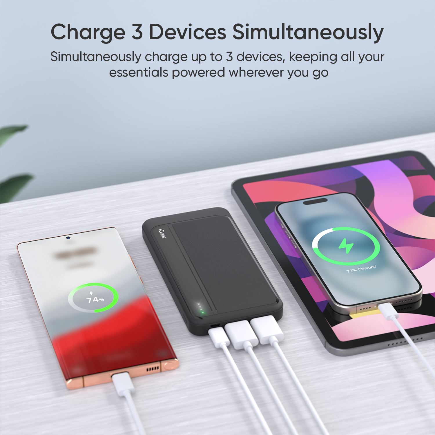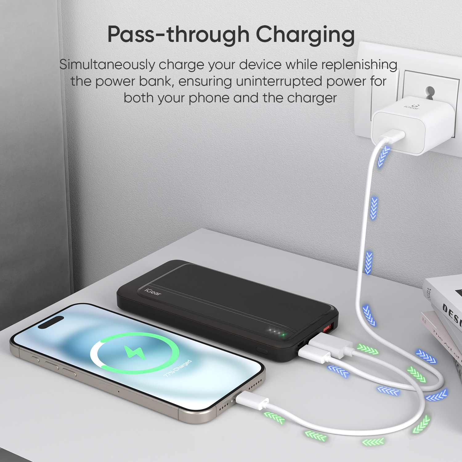 Seamlessly charge your power bank and connected devices simultaneously with pass-through charging technology.