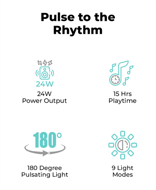 The Spectrum Bluetooth Speaker is the ultimate party starter with 9 mesmerizing light modes and 180-degree pulsating lights that transform any room into a euphoric dance floor.