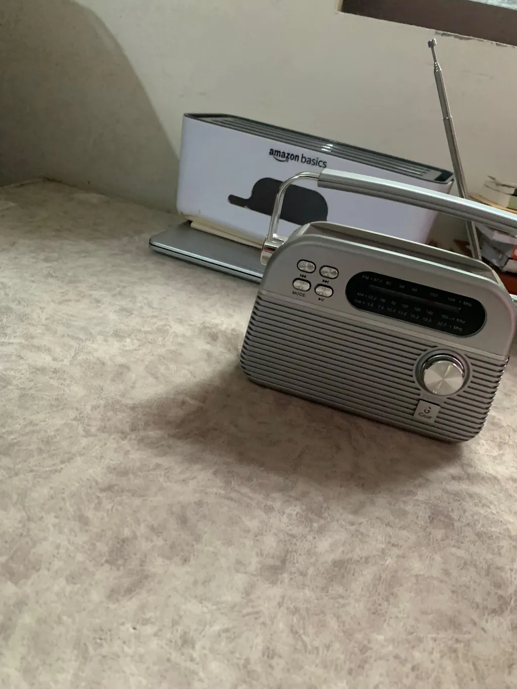 A rechargeable 1200 mAh battery is included in the Evoke Retro portable speaker. It can be charged by an adapter and solar charger which will give you up to three hours of continuous playback.