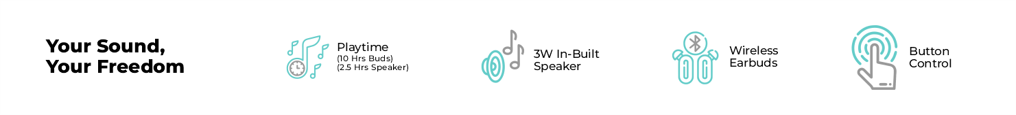 You can enjoy music for about 2.5 hours on a single charge and play unlimited music on earbuds and speakers.